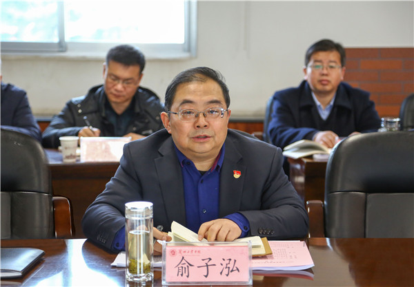 党委书记俞子泓通报本次民主生活会准备情况并代表学校党委领导班子、个人作对照检查
