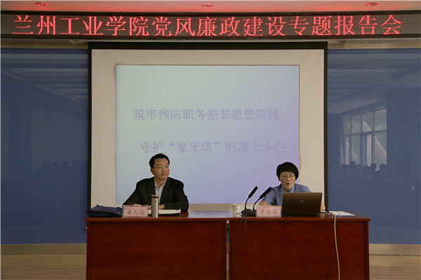 9月23日下午,城关区检察院预防职务犯罪科陈南楠主任应邀来我校作题为《筑牢预防职务犯罪思想防线,守护“象牙塔”的净土本色》的专题报告。纪委书记廉志端主持报告会,全体中层干部听取了报告。