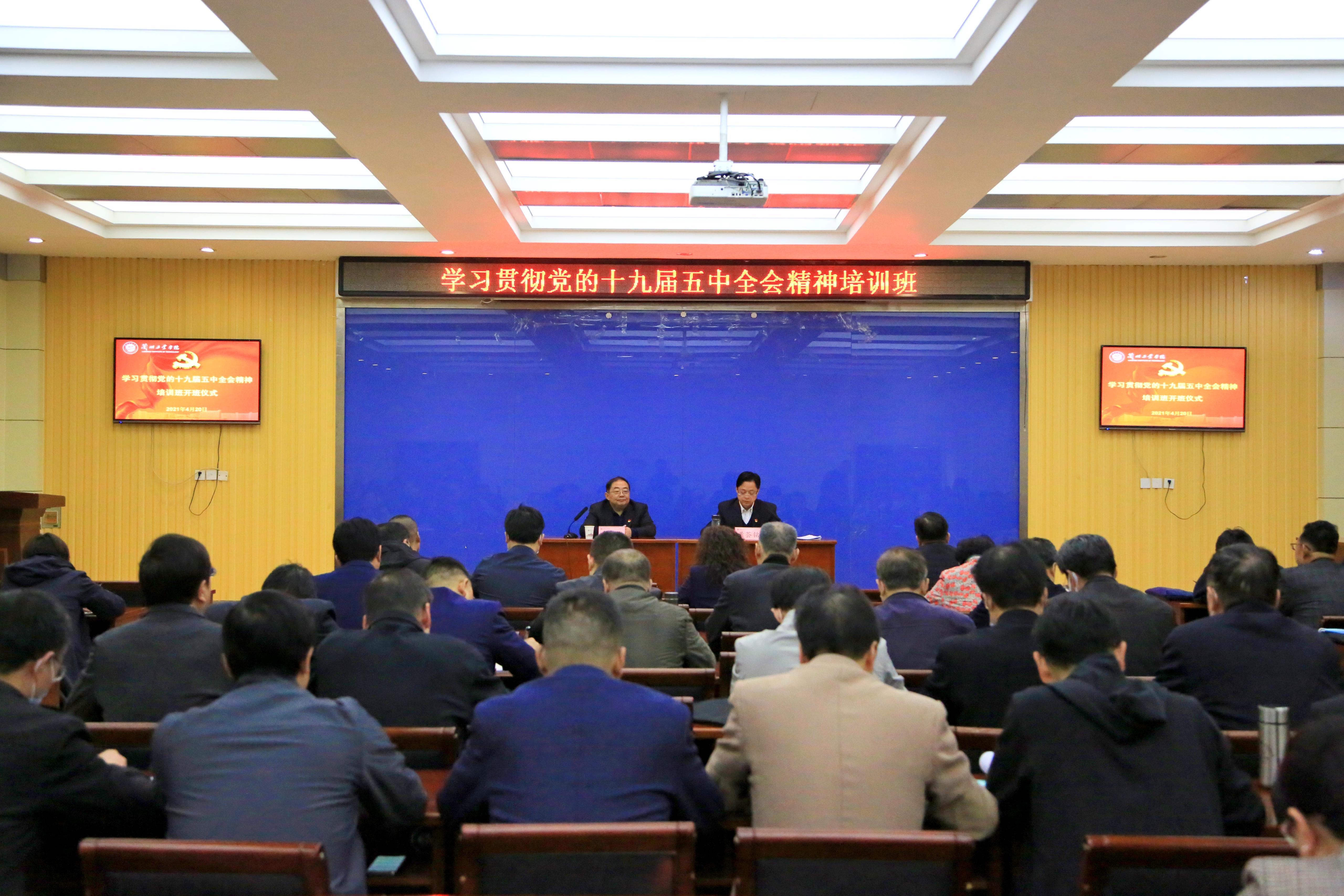 4月20日-22日,学校在第一学术报告厅举办了为期3天的党的十九届五中全会精神培训班。党委书记俞子泓出席开班仪式并讲话,党委副书记黄荟铭主持开班仪式,全体中层领导干部参加了培训。